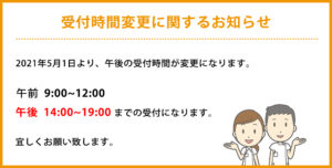 営業時間 午前 / 9:00 ~ 12:00 午後 / 14:30 ~ 19:30
